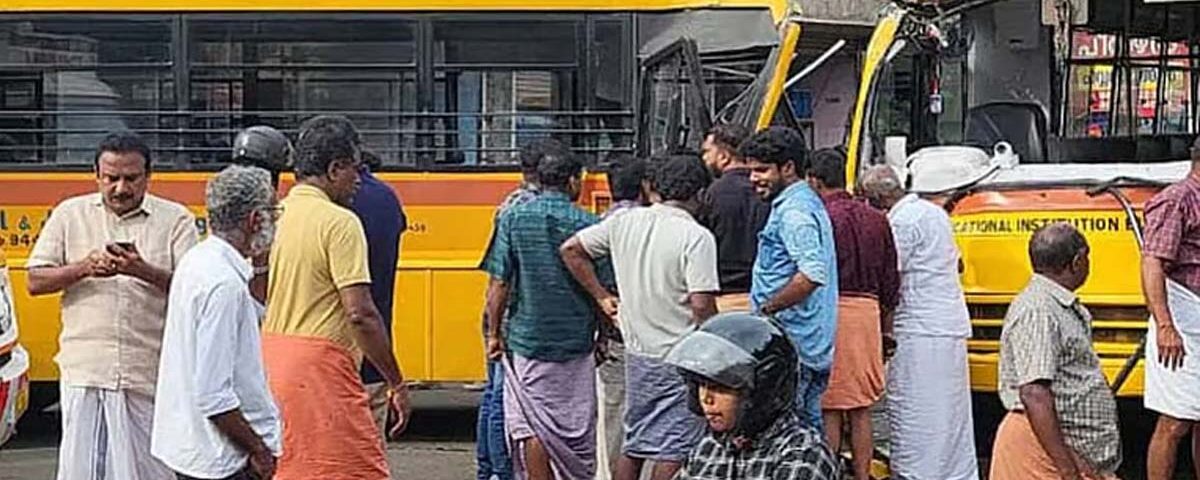 ഇലഞ്ഞി സെന്റ് ഫിലോമിനാസ് സ്കൂളിലെ ബസും കടുത്തുരുത്തി പാഴുത്തുരുത്ത് എസ്കെപിഎസ് സ്കൂളിലെ ബസുമാണ് കൂട്ടിയിടിച്ചത്. വൈകിട്ട് സ്കൂള് വിട്ട ശേഷം വിദ്യാര്ഥികളെ വീട്ടിലേക്ക് മടക്കിക്കൊണ്ടു പോവുകയായിരുന്നു സ്കൂള് ബസുകള്.