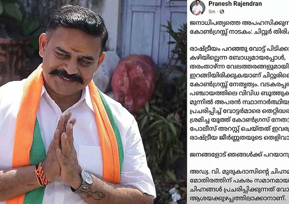 പാലക്കാട് : ഇടതുമുന്നണി സ്ഥാനാര്ഥിക്ക് വോട്ടു ചോദിച്ച് ബിജെപിയുടെ സ്ഥാനാര്ഥി. ചിറ്റൂലിലെ എന്ഡിഎ സ്ഥാനാര്ഥി പ്രാണേഷ് രാജേന്ദ്രനാണ് എല്ഡിഎഫ് സ്ഥാനാർഥി വി മുരുകദാസിനായി വോട്ടു തേടിയത്. വിവാദമായതോടെ ഫെയ്സ്ബുക്ക് പോസ്റ്റ് പ്രാണേഷ് പിന്വലിച്ചു. ചിറ്റൂരില് ഇടതുപക്ഷവും […]