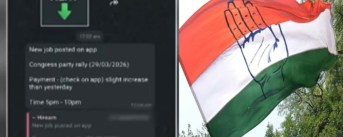 അവിദഗ്ധ മേഖലയിലുള്ള തൊഴിലാളികളെ സപ്ലൈ ചെയ്യുന്ന ‘hirearn’ എന്ന ആപ്ലിക്കേഷന് കേരളത്തില് സജീവമായി പ്രവര്ത്തിക്കുന്നുണ്ട്. ആ ആപ്പിന് കീഴില് സംസ്ഥാനത്ത് വിവിധ ജില്ലകളില് വാട്സ്ആപ്പ് ഗ്രൂപ്പുകള് ഉണ്ട്. ആ വാട്സ്ആപ്പ് ഗ്രൂപ്പിലാണ് ഇന്നലെ രാത്രി 12മണിയോടെ കോണ്ഗ്രസിന്റെ റാലിയിലേക്ക് ആളെ തേടിയുള്ള പരസ്യം വന്നത് എന്നാണ് ആക്ഷേപം. ഇന്ന് നടക്കുന്ന പരിപാടിയിലേക്ക് ആളെ തേടിയാണ് പരസ്യം. കോണ്ഗ്രസ് റാലിയാണ് എന്ന് സന്ദേശത്തില് കൃത്യമായി പറയുന്നുണ്ടെന്നും റിപ്പോര്ട്ടുകള് ചൂണ്ടിക്കാണിക്കുന്നു.