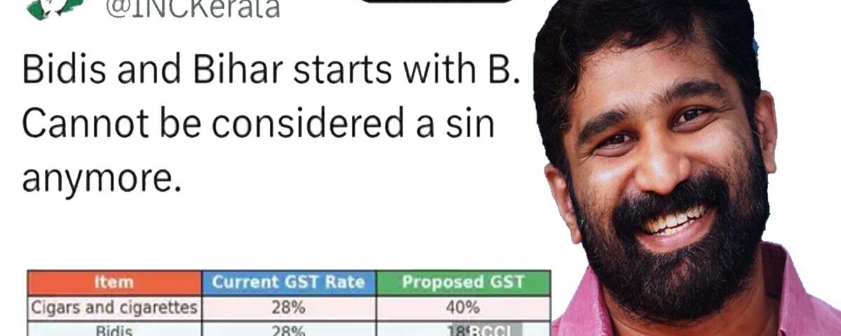 ബീഡി- ബിഹാർ എക്സ് പോസ്റ്റ് ഉപമ : വിടി ബല്‍റാം കെപിസിസി ഡിജിറ്റല്‍ മിഡിയ സ്ഥാനം ഒഴിയുന്നു