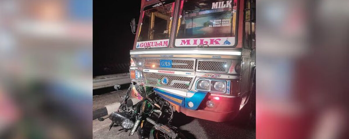 റോഡിലേക്ക് തെറിച്ചു വീണ ഹെൽമറ്റ് എടുക്കുന്നതിനായി പെട്ടെന്നു നിർത്തിയ ബൈക്കിനു പിന്നിലായി പാലുമായി പോയ ലോറി ഇടിക്കുകയായിരുന്നു.