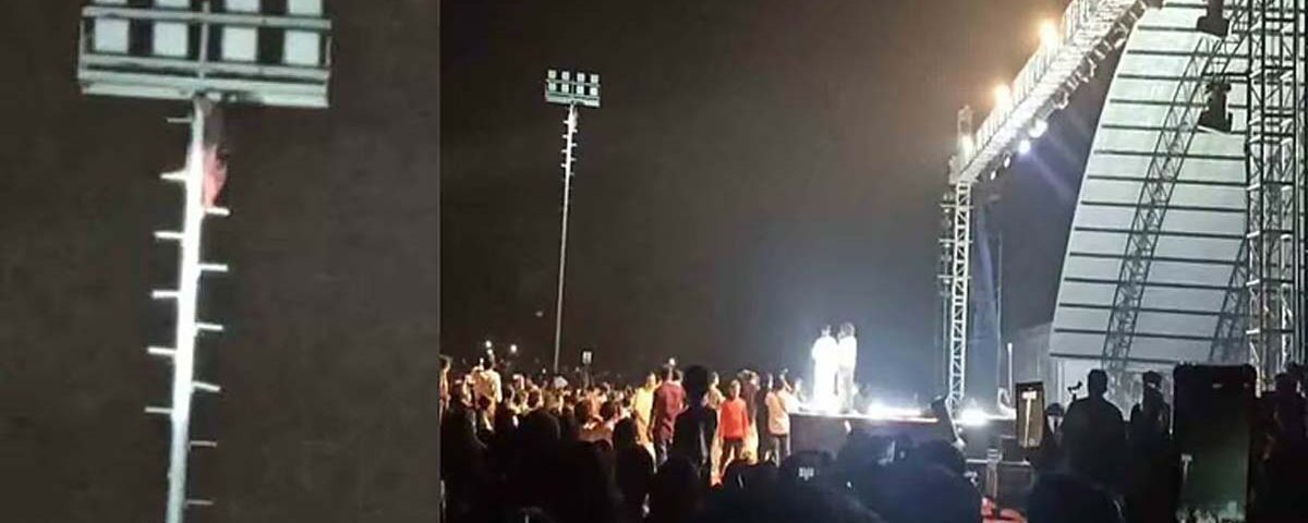 കൽപ്പറ്റ : സംസ്ഥാന തദ്ദേശ ദിനാഘോഷ, ഹാപ്പിനെസ് ഫെസ്റ്റിൻ്റെ സമാപന ദിവസമായ 19 ന് രാത്രി റാപ്പർ വേടൻ്റെ ഷോയ്ക്കിടെ ആരാധികൻ്റെ സാഹസിക പ്രകടനം ആശങ്കയ്ക്ക് വഴിവെച്ചു. ആരാധകനായ യുവാവ് ഗ്രൗണ്ടിലെ ഫ്ലഡ് ലൈറ്റിൻ്റെ മുകളിൽ വലിഞ്ഞു കയറുകയായിരുന്നു. യുവാവ് 35 അടി ഉയരത്തിലുള്ള ഫ്ളഡ് ലൈറ്റിൻ്റെ മുകളിലാണ് യുവാവ് കയറിയത്.