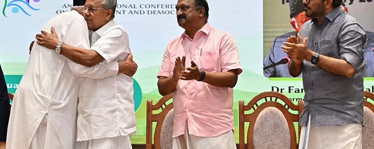 രാജ്യത്തെ അടിച്ചമര്ത്തുന്നവരും ജനാധിപത്യത്തെ അട്ടിമറിക്കാന് ശ്രമിക്കുന്നവരും തോറ്റുപോകുമെന്ന് പറഞ്ഞ് പ്രസംഗം അവസാനിപ്പിച്ച ഫാറുഖ് അബ്ദുള്ള വേദിയിലുള്ള മുഖ്യമന്ത്രി പിണറായി വിജയനെ കെട്ടിപ്പിടിച്ചു. കേരളത്തിന്റെ മതനിരപേക്ഷതയെ പുകഴ്ത്തിയ ഫാറൂഖ് അബ്ദുള്ള കേരളത്തില് എല്ലാ മതസ്ഥര്ക്കും ഒരേപോലെ ജീവിക്കാന് കഴിയുന്നെന്നും എല്ലാവരെയും ഒരേ പോലെ കാണുന്നെന്നും പറഞ്ഞു. ജമ്മുവിലെ കുട്ടികള് എങ്ങനെയാണ് ജീവിക്കുന്നതെന്ന് അറിയാമോയെന്ന് ചോദിച്ചായിരുന്നു ഫാറൂഖ് വികാരാധീനനായത്.