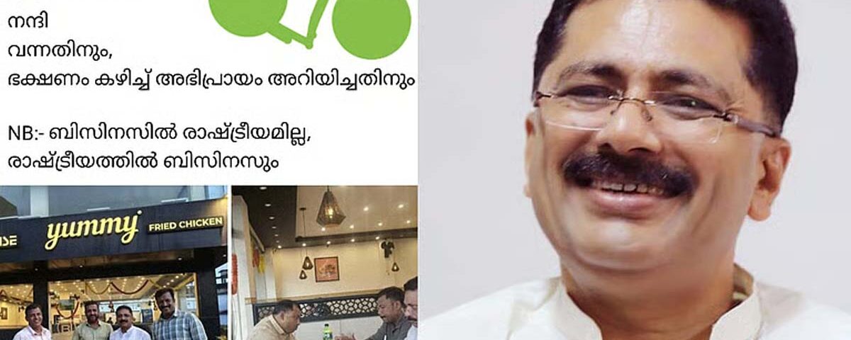 പട്ടാമ്പിക്കടുത്ത കൊപ്പത്തെ “Yummy Fried Chicken” ഷോപ്പ് തന്റേതാണെന്ന് (പി.കെ ഫിറോസിന്റേതാണെന്ന്) സമ്മതിച്ചതിന്!