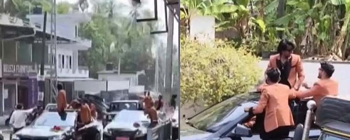 കഴിഞ്ഞ ദിവസമാണ് മേപ്പയൂര് മഞ്ഞക്കുളത്ത് നരക്കോട് സ്വദേശികളുടെ വിവാഹത്തോടനുബന്ധിച്ച് റോഡില് ഗതാഗത തടസമുണ്ടാക്കി യുവാക്കള് യാത്രചെയ്തത്. 5 ആഡംബര വാഹനങ്ങളിലാണ് യുവാക്കള് സഞ്ചരിച്ചത്. കാറിനു മുകളില് കയറിയും ഡോര് തുറന്നു പിടിച്ചുമായിരുന്നു യാത്ര. വാഹനങ്ങളിലുണ്ടായിരുന്ന യുവാക്കള് ഡോറിലൂടെ തല പുറത്തിട്ട് അപകടകരമായ രീതിയിലാണു യാത്ര ചെയ്തത്. ഇതിനു തൊട്ടു പിന്നാലെയാണ് വരനും സംഘവും മറ്റൊരു കാറില് വന്നത്. ഈ വാഹനങ്ങളുടെ നമ്പര് സഹിതം നാട്ടുകാര് മേപ്പയൂര് പൊലീസില് പരാതി നല്കിയിരുന്നു.