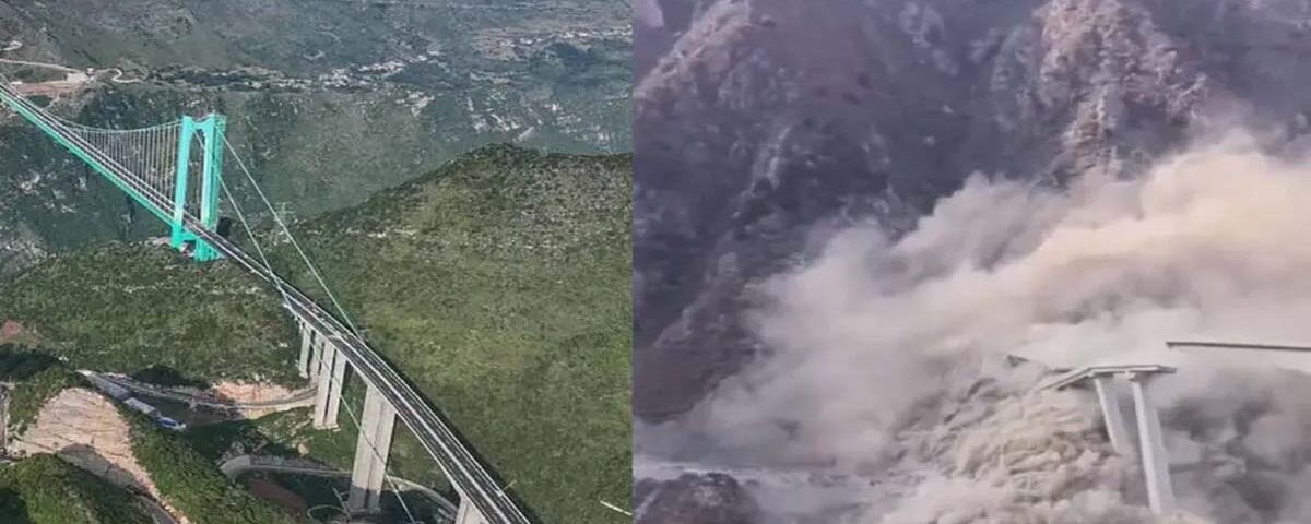 മധ്യ ചൈനയെയും ടിബറ്റിനെയും ബന്ധിപ്പിക്കുന്ന ദേശീയ പാതയുടെ ഭാഗമായ ഹോങ്ചി പാലത്തിൻ്റെ കോൺക്രീറ്റ് ഭാഗം കഷണങ്ങളായി തകർന്നുവീഴുന്നതിൻ്റെ വീഡിയോ ദൃശ്യങ്ങൾ സാമൂഹിക മാധ്യമങ്ങളിൽ വൻതോതിൽ പ്രചരിക്കുന്നുണ്ട്. ചൊവ്വാഴ്ച ഉച്ചകഴിഞ്ഞാണ് സംഭവം നടന്നത്.