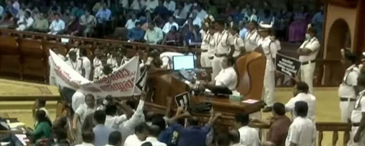 സ്പീക്കര് എ എന് ഷംസീറിന്റെ മുഖം മറച്ചു കൊണ്ട് ബാനര് വലിച്ചുയര്ത്തുകയും ചെയ്തു. സ്വര്ണം കട്ടത് ആരപ്പാ സഖാക്കളാണെ അയ്യപ്പ എന്നെഴുതിയ ബാനറാണ് പ്രതിപക്ഷം ഉയര്ത്തിയത്. ബാനര് താഴ്ത്തണമെന്നും ഇല്ലെങ്കില് പിടിച്ചുമാറ്റുമെന്നും സ്പീക്കര് എ എന് ഷംസീര് മുന്നറിയിപ്പ് നല്കി. യുഡിഎഫ് എംഎല്എ ടി വി ഇബ്രാഹിമും സ്പീക്കറുടെ ഇരിപ്പിടത്തിലേക്ക് കയറാന് ശ്രമിച്ചു.