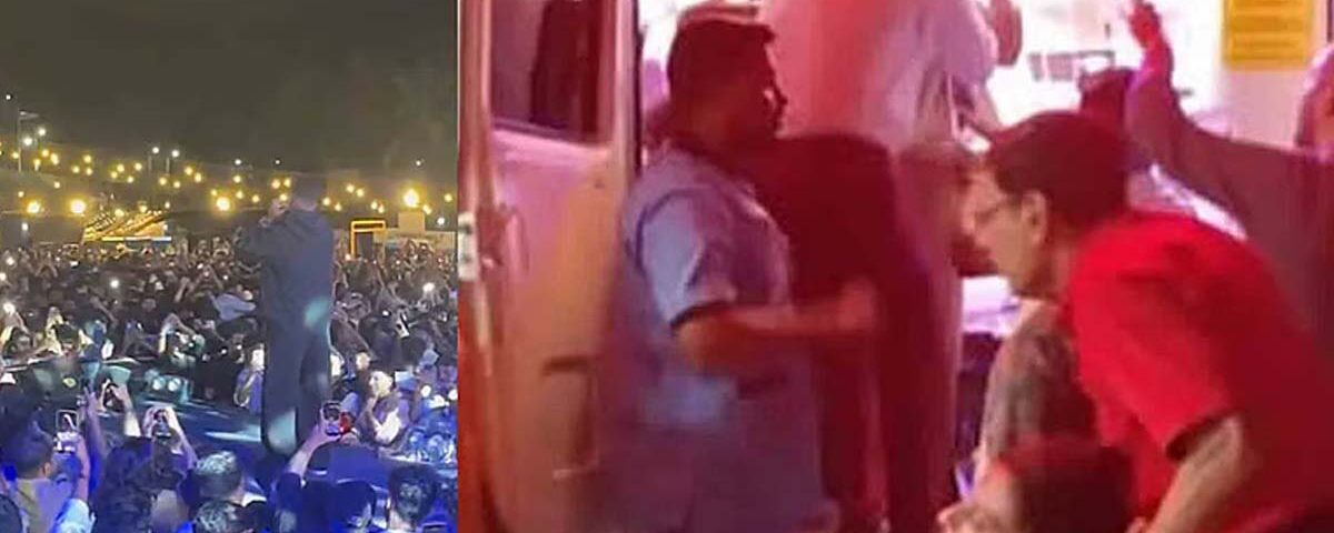 തിരക്ക് നിയന്ത്രണാതീതമായതോടെ പൊലീസിന്റെ നിര്ദേശപ്രകാരം സംഗീത പരിപാടി പകുതിയില് അവസാനിപ്പിച്ചു. പൊലീസ് ലാത്തിവീശിയാണ് ജനക്കൂട്ടത്തെ പിരിച്ചുവിട്ടത്. ജില്ലാ പൊലിസ് മേധാവി ബി.വി. വിജയ്ഭാരത് റെഡ്ഡിയുടെ നേതൃത്വത്തിലുള്ള പൊലിസ് സംഘമാണ് സ്ഥലത്തെത്തിയത്. ജില്ലാ പൊലീസ് മോധാവി തന്നെ ജാഗ്രത പാലിക്കണമെന്ന് മൈക്കിലൂടെ മുന്നറിയിപ്പ് നല്കി. ഇതിനിടെ പരിപാടി കാണാനായി എത്തിയവരെ പാതയോരത്ത് വച്ച് പൊലീസ് ലാത്തി വീശി വിരട്ടിയോടിക്കുന്നതിന്റെ ദൃശ്യങ്ങള് ഉള്പ്പെടെ പുറത്തുവന്നു. ചിലര് കുറ്റിക്കാട്ടിലെ കുഴിയില് വീണു.