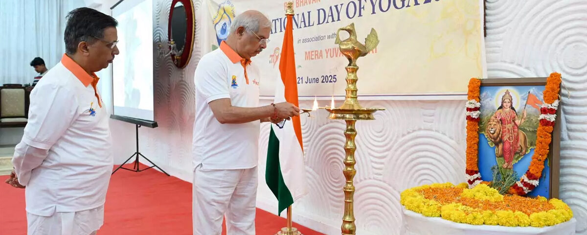 തിരുവനന്തപുരം : യോഗാ ദിനത്തിലും ആർഎസ്എസ് ഭാരതാംബ ചിത്രവുമായി ഗവർണർ രാജേന്ദ്ര അര്ലേക്കര്. രാജ്ഭവനിലെ യോഗാദിന പരിപാടികൾ തുടങ്ങിയത് വിവാദ ചിത്രത്തിന് മുന്നിൽ വിളക്ക് കൊളുത്തിയും പുഷ്പാർച്ചന നടത്തിയുമാണ്.