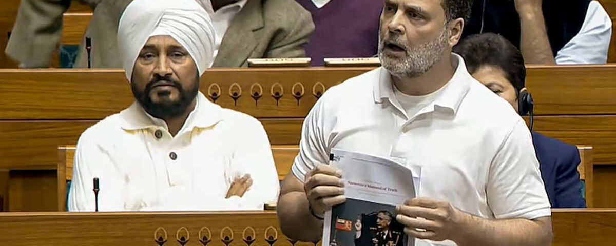 രാഹുല്ഗാന്ധി സംസാരിക്കുമ്പോള്, പ്രകാശിപ്പിക്കാത്ത പുസ്തകത്തിലെ കാര്യങ്ങള് സഭയില് ഉന്നയിക്കുന്നത് ചട്ടവിരുദ്ധമാണെന്ന് പ്രതിരോധ മന്ത്രി രാജ്നാഥ് സിങ് ചൂണ്ടിക്കാട്ടി. എന്നാല് താന് ഒരു മാഗസിനില് വന്ന റിപ്പോര്ട്ടാണ് വായിക്കുന്നതെന്ന് രാഹുല്ഗാന്ധി പറഞ്ഞു. പുറത്തിറങ്ങാത്ത പുസ്തകം വായിക്കാനാകില്ലെന്ന് സ്പീക്കര് ഓം ബിര്ല സൂചിപ്പിച്ചു. സഭാചട്ടം പാലിക്കണമെന്നും സ്പീക്കര് നിര്ദേശിച്ചു.