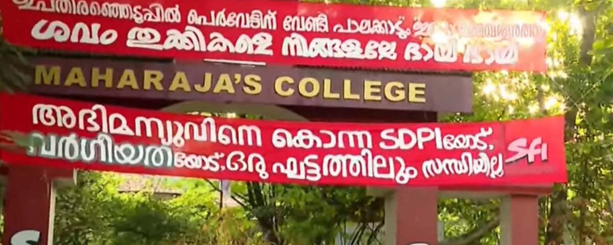 കൊച്ചി : സിപിഐഎം- എസ്ഡിപിഐ ധാരണയെ വിമര്ശിച്ച് എറണാകുളം മഹാരാജാസ് കോളജിനു മുന്നില് എസ്എഫ്ഐയുടെ ബാനര്. ‘അഭിമന്യുവിനെ കൊന്ന എസ്ഡിപിഐയോട്,വര്ഗീയതയോട് സന്ധിയില്ല’ എന്നാണ് ബാനറിലുള്ളത്.ഇന്നലെ വൈകുന്നേരമാണ് ബാനര് ഉയര്ത്തിയത്.