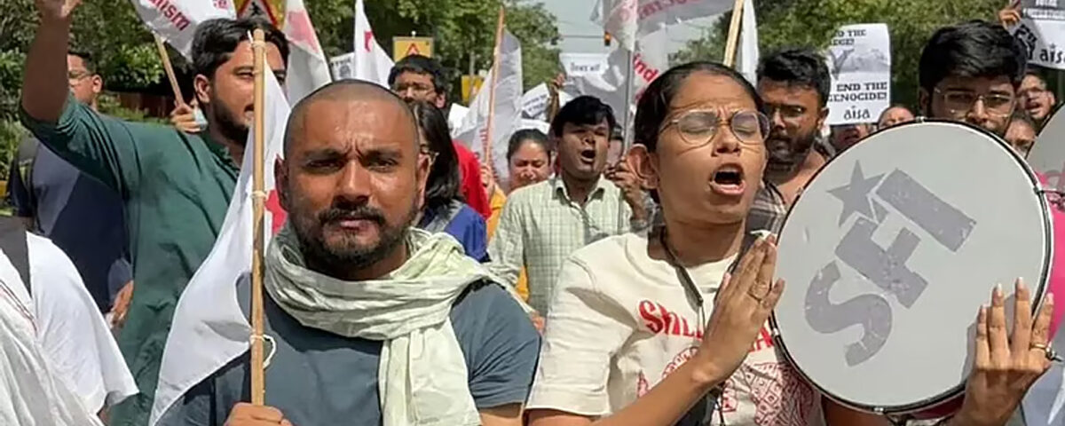 ഡൽഹി എസ്എഫ്ഐ പ്രസിഡന്റ് സൂരജ് ഉൾപ്പെടെയുള്ളവരെ പൊലീസ് കസ്റ്റഡിയിലെടുത്തിട്ടുണ്ട്. ഇവരിൽ നിന്നും പ്ലക്കാർഡുകളും പോസ്റ്ററുകളും പിടിച്ചെടുത്തു.
