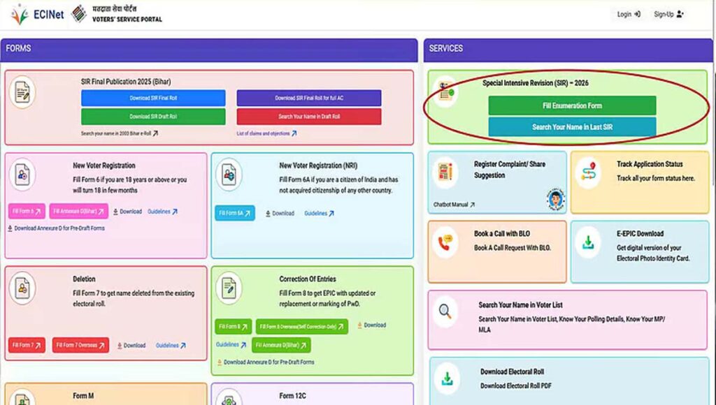 തിരുവനന്തപുരം : തീവ്രവോട്ടര് പട്ടിക പരിഷ്കരണത്തിന്റെ (എസ്ഐആര്) നടപടികള് കേരളത്തിലും പുരോഗമിക്കുകയാണ്. ബിഎല്ഒമാര് വീട്ടിലെത്തുമ്പോള് സ്ഥലത്തില്ലെങ്കിലും ആശങ്കപ്പെടേണ്ടതില്ല, എന്യുമറേഷന് ഫോം ഓണ്ലൈനായും നല്കാം. പ്രവാസികളടക്കമുള്ളവര്ക്ക് വേണ്ടിയാണ് തെരഞ്ഞെടുപ്പ് കമ്മീഷന് ഈ സൗകര്യം ഏര്പ്പെടുത്തിയിരിക്കുന്നത്. voters.eci.gov.in എന്ന […]
