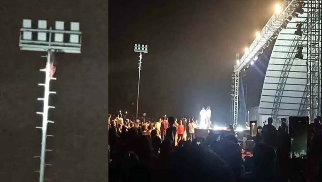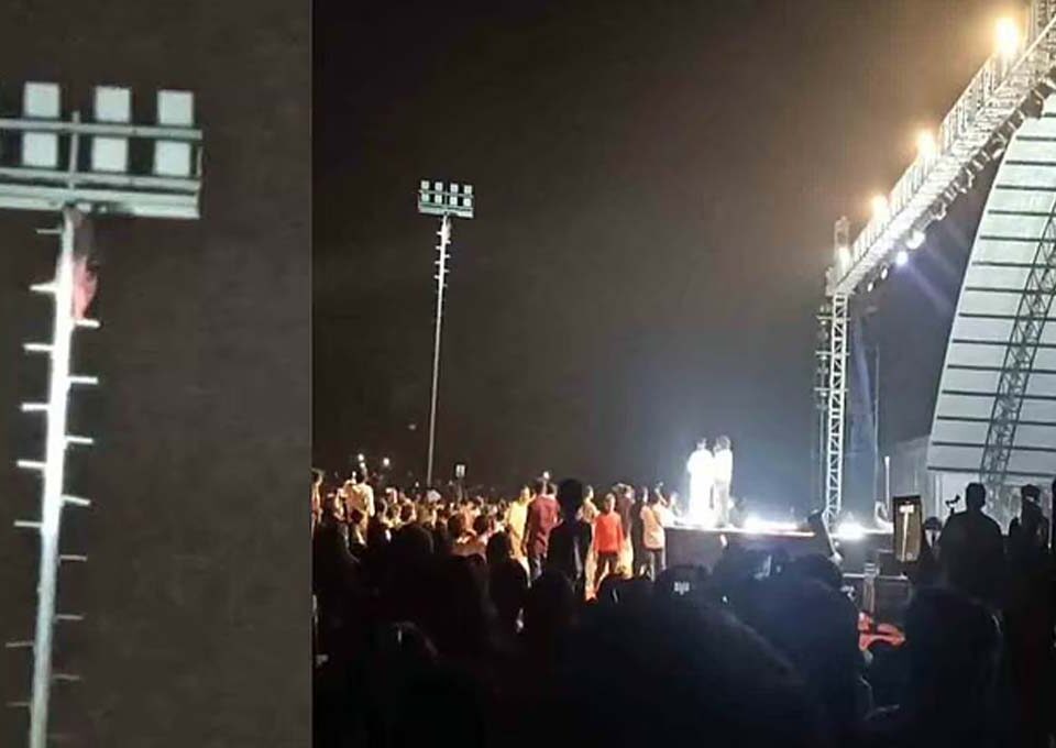 ധർമ്മശാലയിലെ വേടൻ്റെ ഷോയ്ക്കിടെ വിളക്കു കാലിൽ വലിഞ്ഞു കയറി ആരാധകൻ്റെ അഭ്യാസം