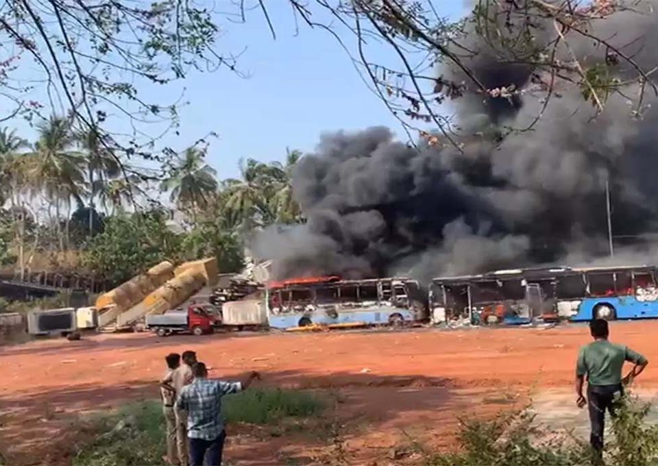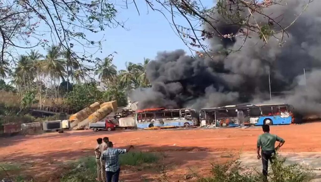 കരിപ്പൂർ എയർപോർട്ട് റോഡിൽ തീപിടിത്തം; നാല് ബസുകൾ കത്തി നശിച്ചു