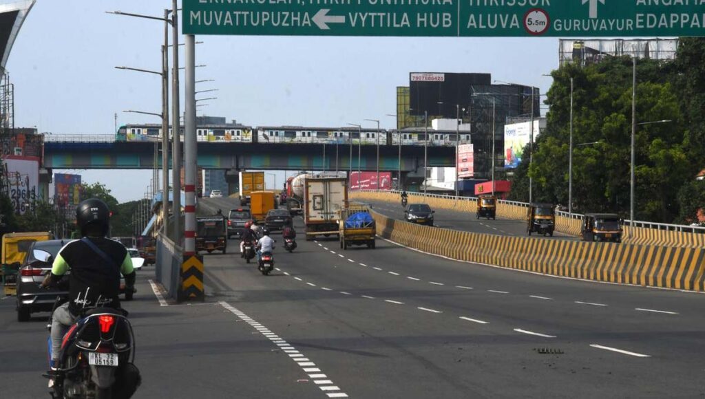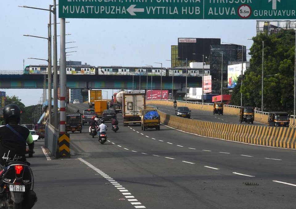 പാലാരിവട്ടത്ത് ദേശീയപാത 66 കടന്നുപോകുനത്ത് കൊച്ചി മെട്രോയ്ക്ക് മുകളിലൂടെ