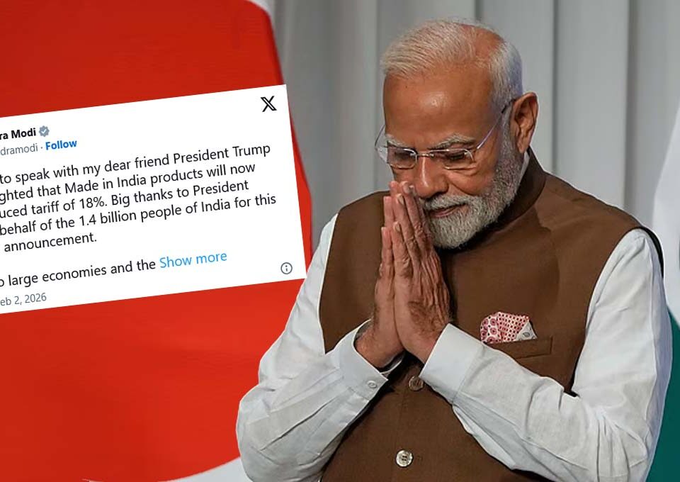 ന്യൂഡല്ഹി : ഇന്ത്യയ്ക്ക് ചുമത്തിയ തീരുവ 18 ശതമാനമാക്കി കുറച്ച യു എസ് പ്രസിഡന്റ് ഡോണള്ഡ് ട്രംപിന് നന്ദി പറഞ്ഞ് പ്രധാനമന്ത്രി നരേന്ദ്രമോദി. സമൂഹമാധ്യമ പോസ്റ്റിലാണ് മോദി ട്രംപിന് നന്ദി അറിയിച്ചത്. ഈ പ്രഖ്യാപനത്തിന് ഇന്ത്യയിലെ