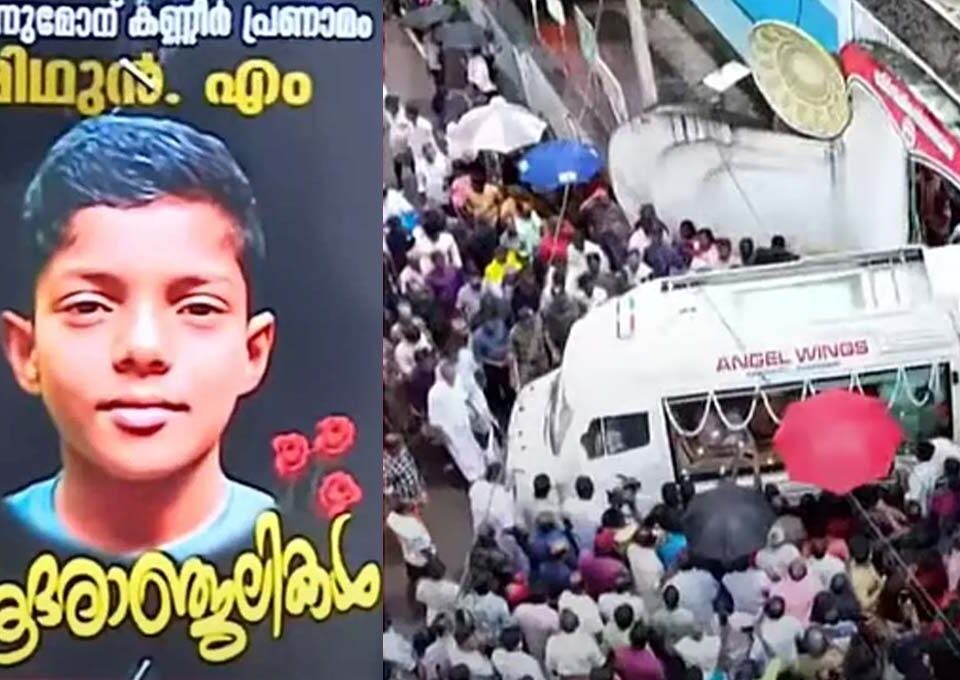 കൊല്ലത്ത് ഷോക്കേറ്റ് മരിച്ച എട്ടാം ക്ലാസ് വിദ്യാർഥി മിഥുന്റെ മൃതദേഹം സംസ്കരിച്ചു; അന്തിമോപചാരം അര്പ്പിച്ച് ആയിരങ്ങള്