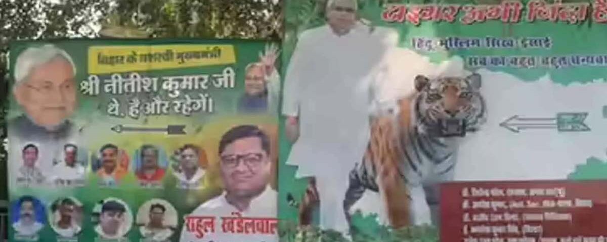 പട്ന : ബിഹാറിൽ എൻഡിഎയുടെ മികച്ച പ്രകടനത്തിന് പിന്നാലെ നിതീഷ് കുമാറിനെ പുകഴ്ത്തി മുഖ്യമന്ത്രിയുടെ വസതിക്ക് മുന്നിൽ പോസ്റ്റർ. ടൈഗർ അഭി സിന്ദ ഹേ ( കടുവ ഇപ്പോഴും ജീവിച്ചിരിപ്പുണ്ട് ) എന്ന തലക്കെട്ടിൽ കടുവയുടേയും നിതീഷിന്റെയും ഫോട്ടോയുള്ള പോസ്റ്ററുകളാണ് പ്രത്യക്ഷപ്പെട്ടത്. തെരഞ്ഞെടുപ്പ് ഫലങ്ങൾ പുറത്തുവന്ന് തുടങ്ങിയതോടെ ബിഹാർ രാഷ്ട്രീയത്തിൽ നിതീഷ് കുമാർ തന്നെയാണ് യഥാർത്ഥ കടുവയെന്ന് തെളിഞ്ഞുവെന്ന് പോസ്റ്റർ സ്ഥാപിച്ച ജനതാദൾ യുനൈറ്റഡ് പ്രവർത്തകർ പറഞ്ഞു.
