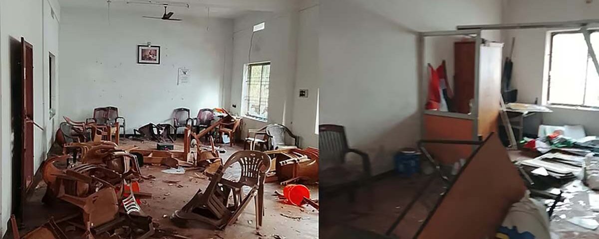 അതേസമയം സിപിഐഎം ശക്തികേന്ദ്രമായ മയ്യിലില് കോണ്ഗ്രസ് മണ്ഡലം കമ്മിറ്റി ഓഫിസ് അടിച്ച് തകര്ത്തു. മയ്യില് ടൗണിലെ കോണ്ഗ്രസ് ഓഫീസായ ഗാന്ധിഭവനാണ് തകര്ത്തത്. ഇന്ന് പുലര്ച്ചെയാണ് അക്രമം നടന്നത്. അക്രമത്തിന് പിന്നില് സിപിഐഎം പ്രവര്ത്തകരെന്ന് കോണ്ഗ്രസ് നേതൃത്വം ആരോപിച്ചു.